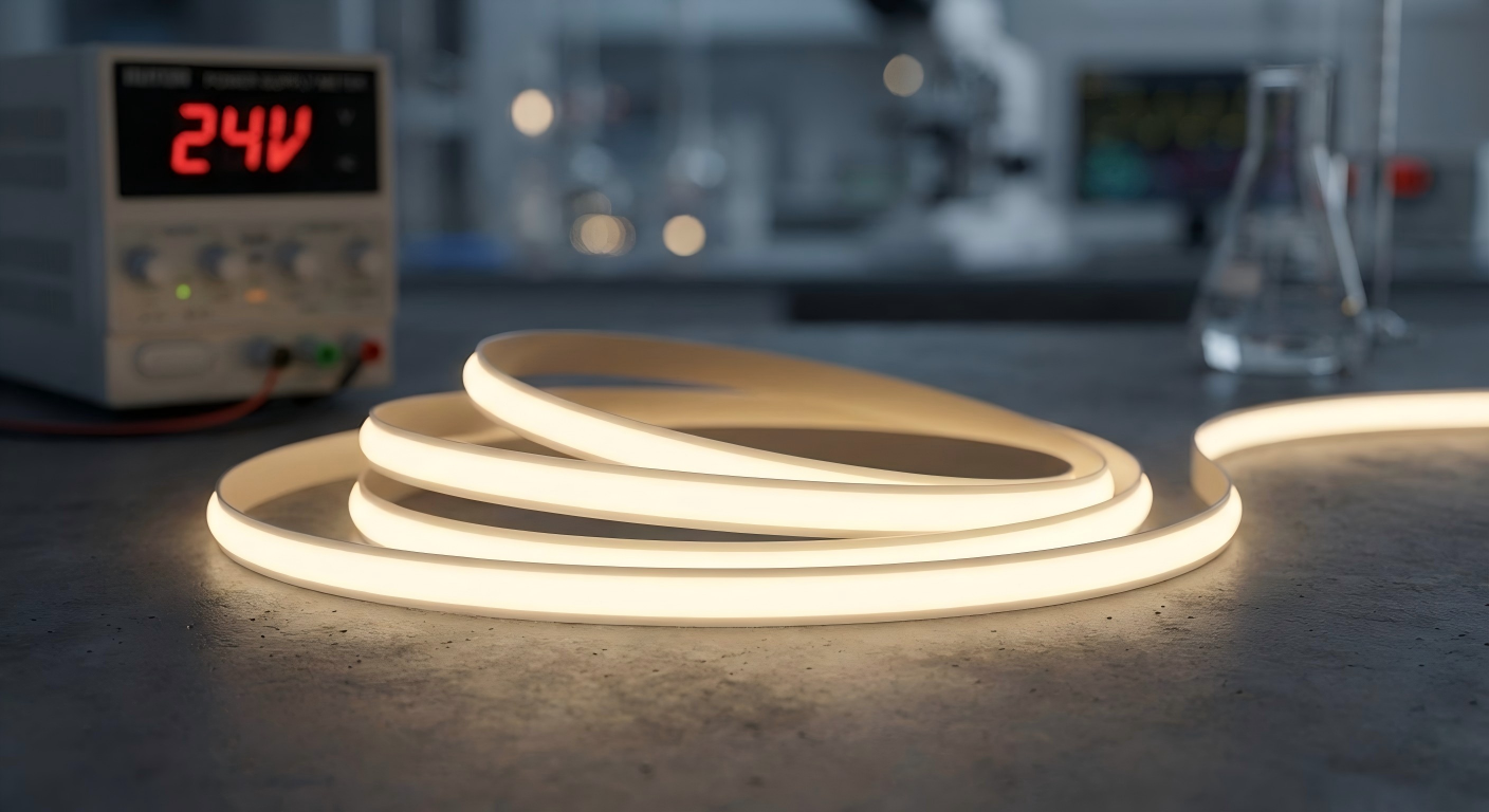 ミニサイズLED, 2.7mm, 極細, 狭小スペース, カスタマイズ 「照明を設置したいけれど、スペースが狭すぎて断念した」という経験はありませんか?SUNSEMIは、そんな設計上の限界を打破するために、業界最小クラスの「ミニサイズFCOB LEDテープライト」を開発しました。 当社のミニシリーズは、幅がわずか2.7mmや4mmという驚異的な細さを実現しています。これまでの標準的なLEDテープライト(8mm〜10mm)では入らなかった場所にも、シームレスな光を届けることができます。 家具の棚板・隙間照明:厚みのない棚板や、キャビネットの目立たない場所に。 展示ケース・ジュエリー什器:商品を引き立てるために、光源を極限まで隠したい場所に。…